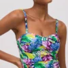 Elste bañador reductor es la opción perfecta para quienes buscan una silueta visiblemente más estilizada. Diseñado con un tejido de alta compresión, este traje de baño actúa como una faja envolvente que define la cintura, reduce volumen en la zona abdominal y realza la figura. Su corte bandeau permite lucir hombros y escote sin marcas, ideal para el bronceado. Además, incorpora tirantes de quita y pon. El estampado tropical en tonos intensos añade el toque de frescura perfecto para un día de playa o piscina.