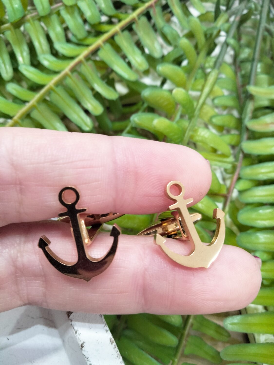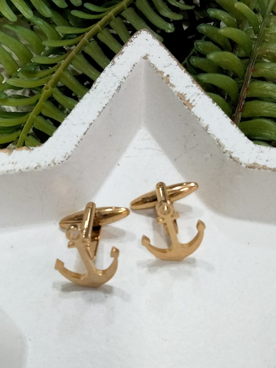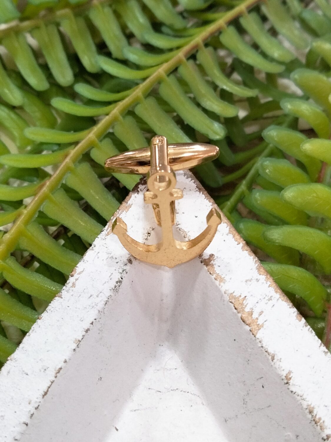 Son unos Gemelos de acero dorados con la figura de un ancla.