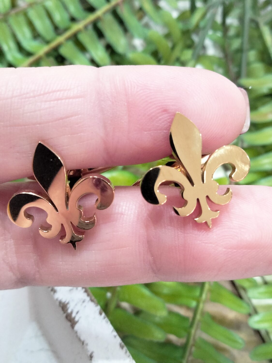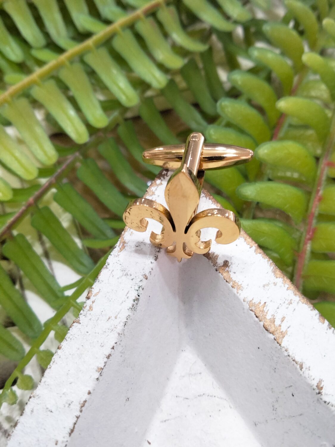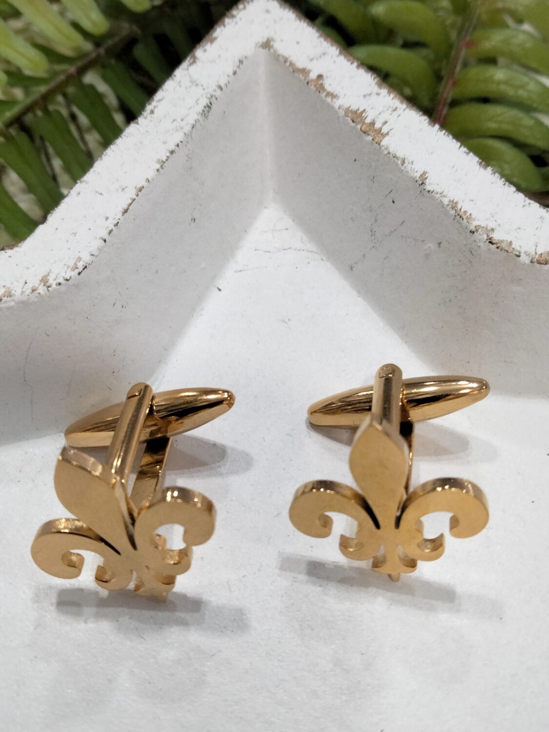 Son unos Gemelos de acero dorados con la figura de la flor de lis.