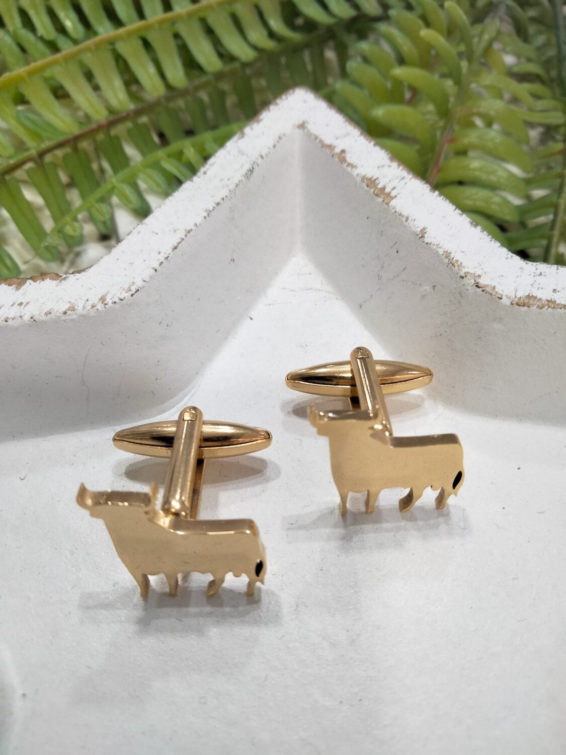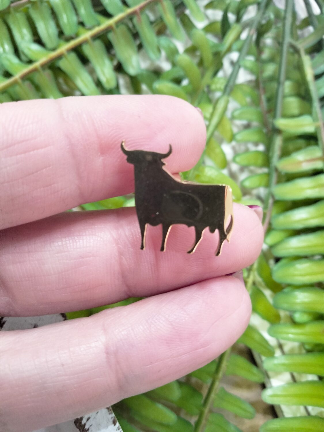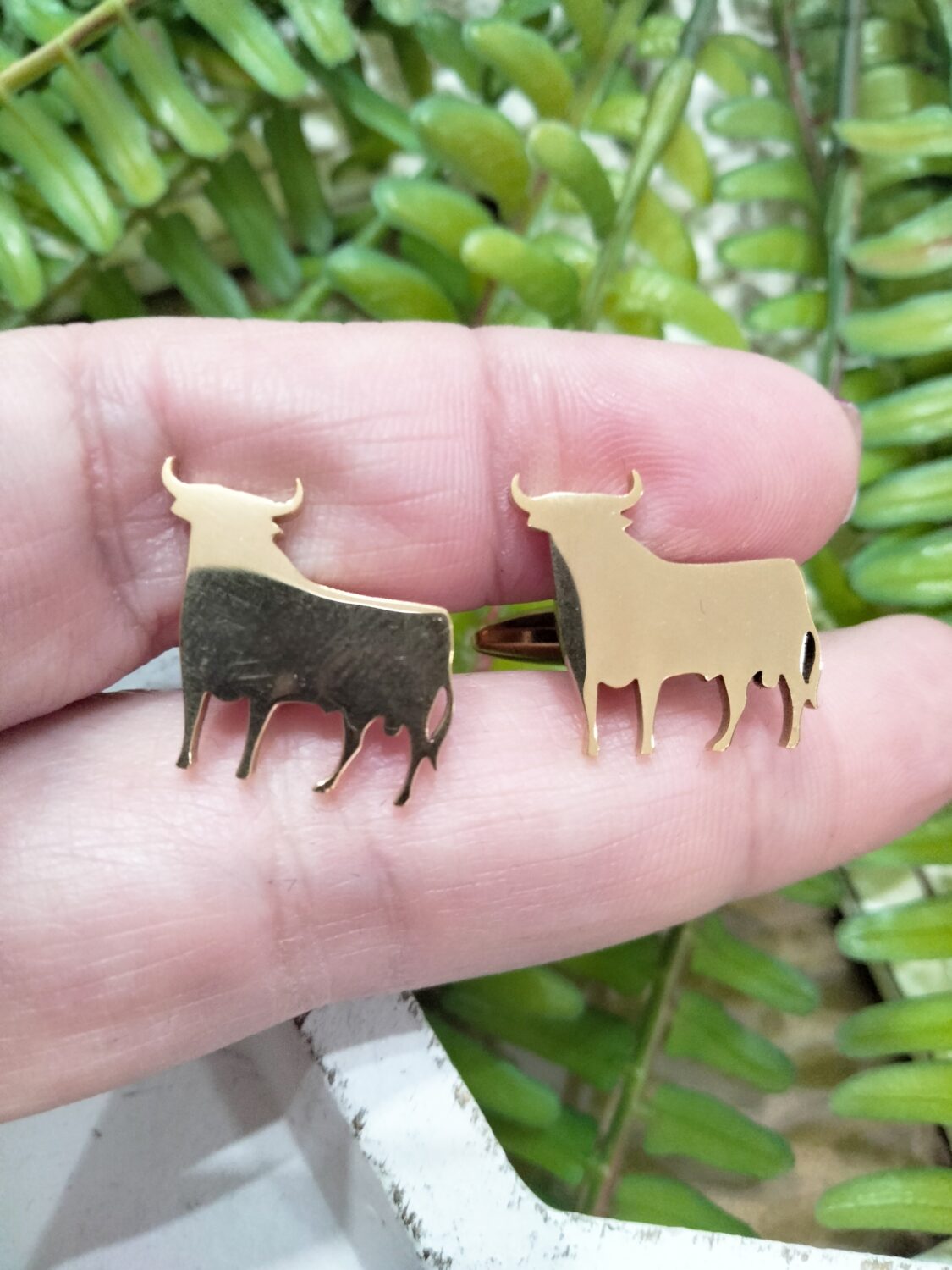 Son unos Gemelos de acero dorados con la figura del toro de Osborne.