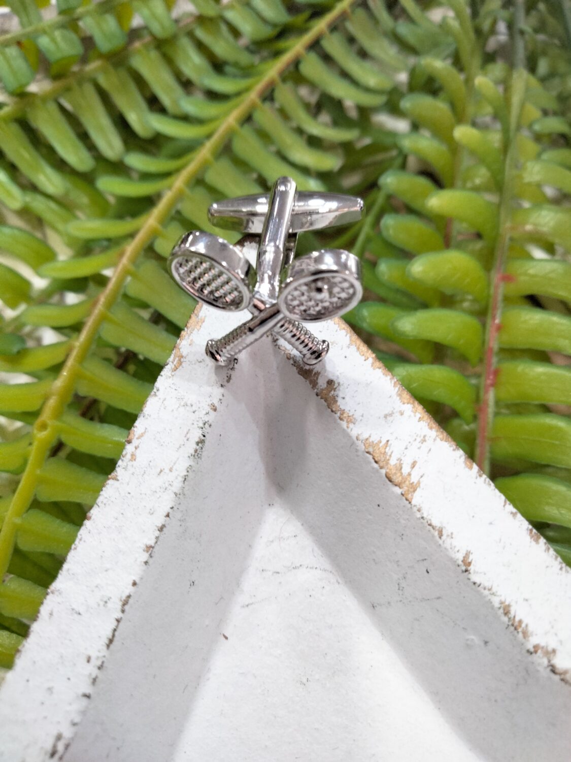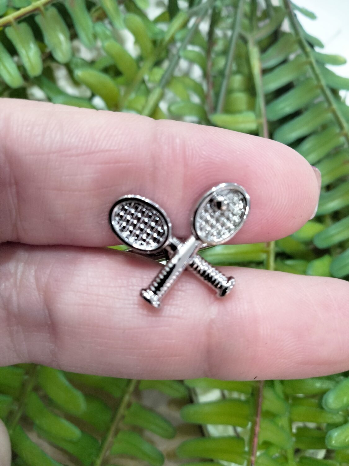 Son unos Gemelos de acero plateados con la figura de unas raquetas de tenis
